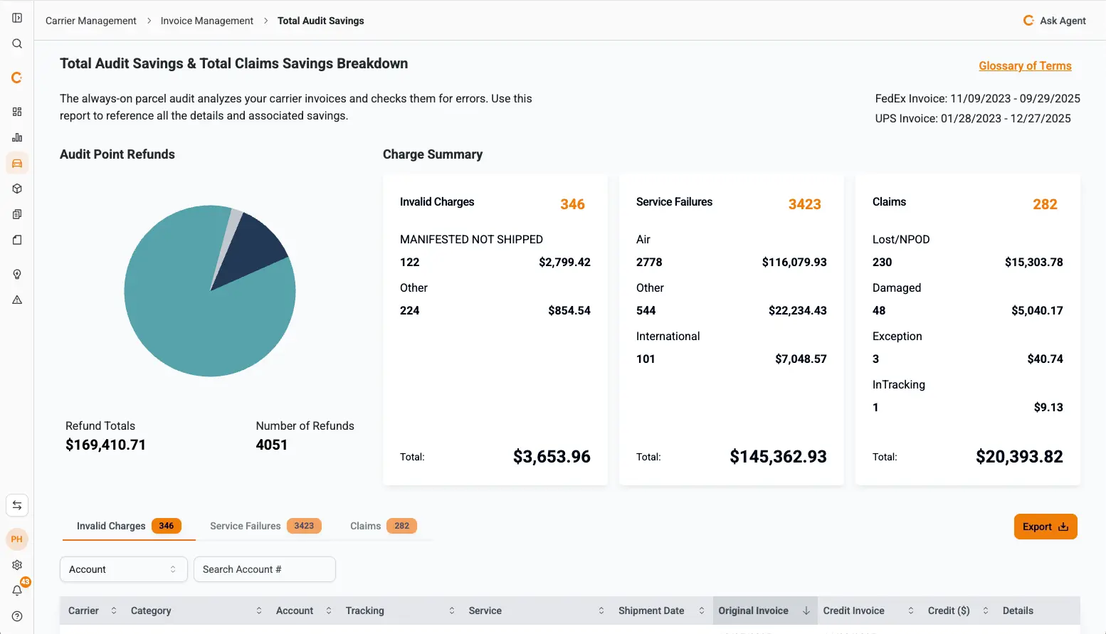 SiftedAI Copilot isn’t just another chatbot, it’s agentic AI designed to do real work for shippers. It’s overlayed across the entire SiftedAI platform to continuously monitor your parcel operations, identify risks and uncover savings opportunities before you even ask. Unlike traditional LLMs, it’s trained on logistics, uses your data safely, and delivers accurate results—not guesses.