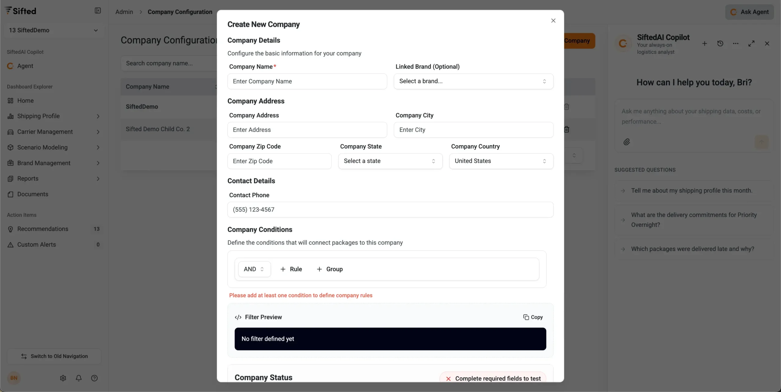 Managing multi-brand portfolios doesn’t have to be messy. Company Configuration lets you define brands using rules like account number, reference number, or GL code, so you can automatically segment shipments, apply brand-specific markups, and export clean, client-ready invoices.