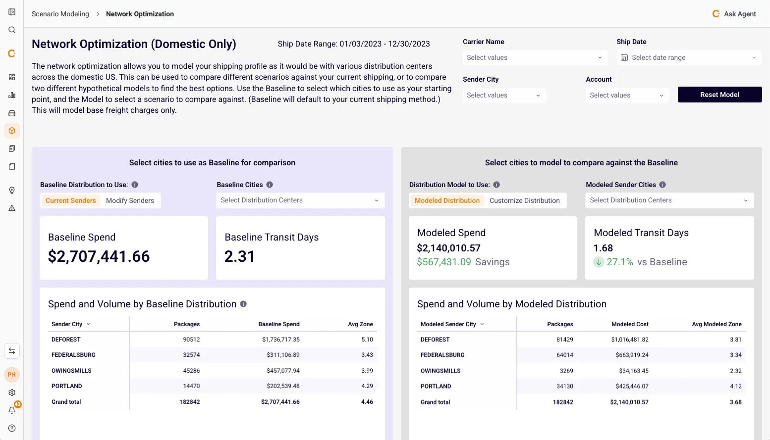 Are you confident your contracts aligns with your shipping profile? Use an AI-powered modeling tool to evaluate and compare proposals and understand their impact on your total cost.