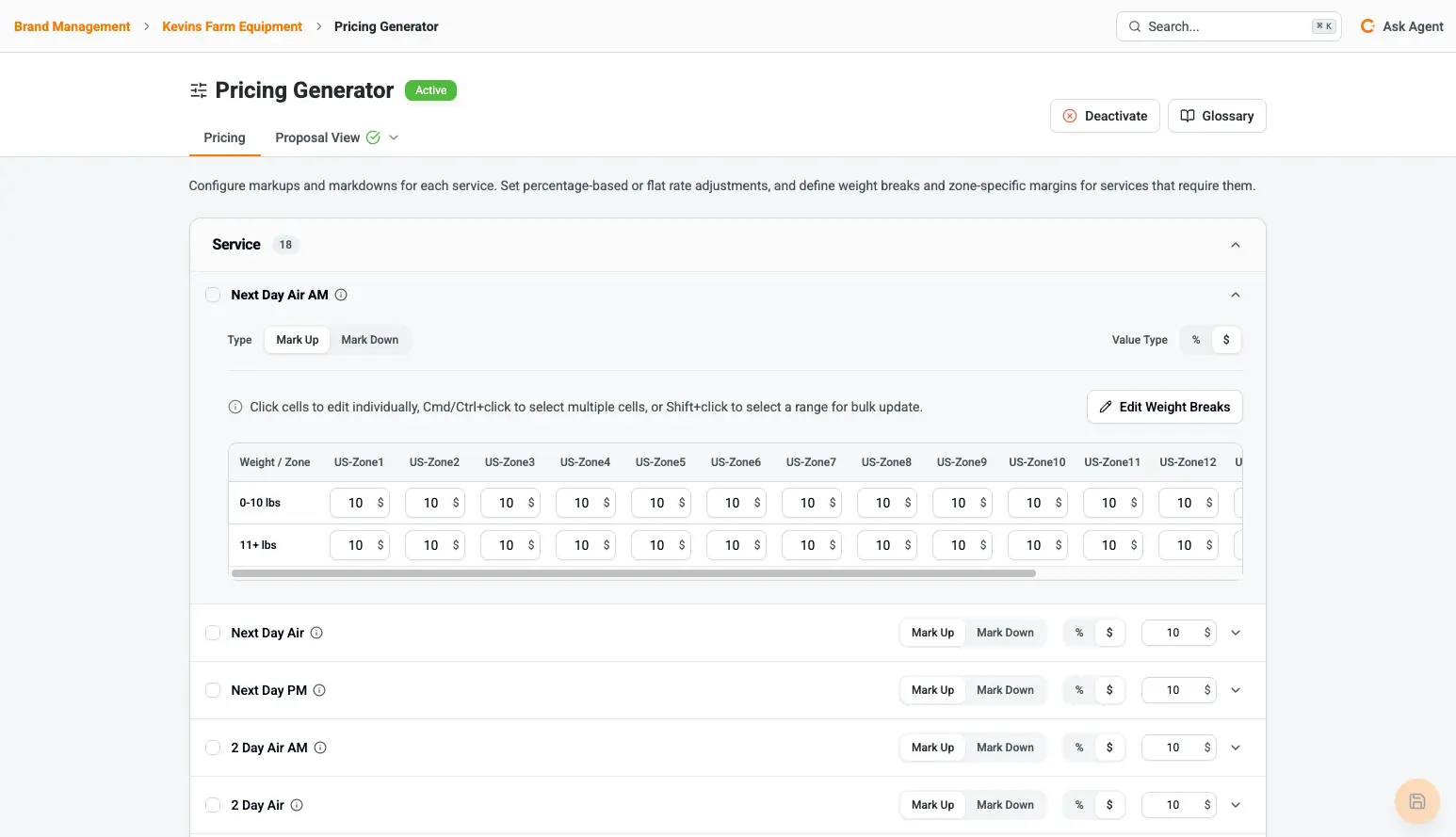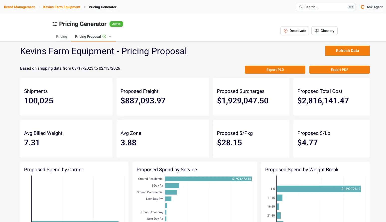Don’t lose another deal to slow or incomplete pricing proposals. Pricing Generator helps you build winning pricing and network proposals in record time; Just upload your prospect’s shipping profile, your distribution network, your rates, and apply any markups you need.